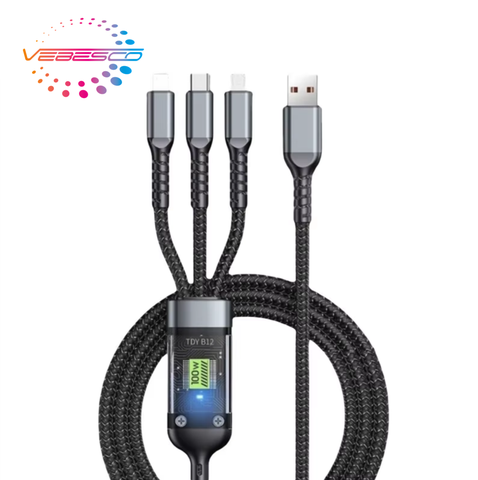 Cable tres en uno de PVC de carga súper rápida de 100W, pantalla Digital transparente, uno a tres Cable móvil de datos, carga rápida 5A