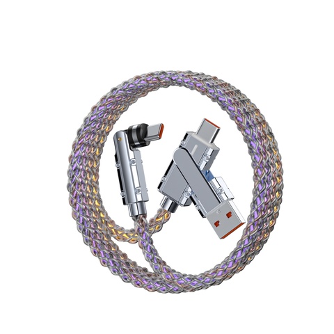 चार-इन-वन 6a pd फास्ट चार्जिंग 180 डिग्री सिलिकॉन केबल टाइप-सी बॉक्स एंड्रॉइड मोबाइल फोन डेटा केबल थोक