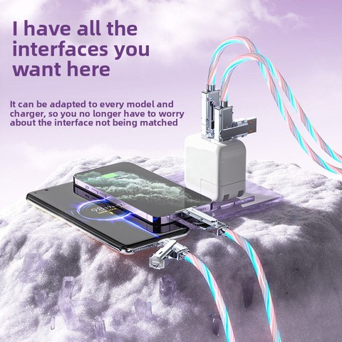 दो-प्लग टू-वे नेतृत्व वाले सुपर फास्ट चार्जिंग डेटा केबल विलुमिटिंग, इयरफ़ोन के लिए 4-इन-वन के लिए 4-इन-वन